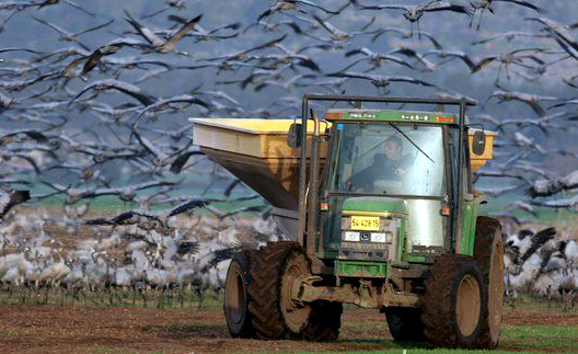This keeps the birds fed, and the crops uneaten. Clear across the Hula Valley.